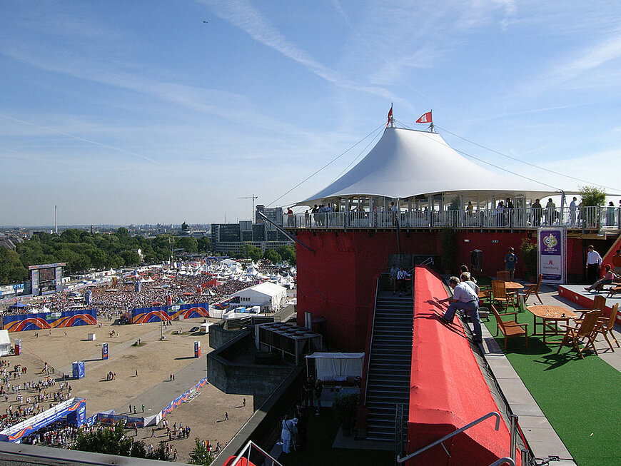 Auf dem Dach des Medienbunkers am Heiligengeistfeld in Hamburg entstand für die Zeit der Fußball-WM die VELUX Lounge als temporäre Konstruktion. In rund 40 Metern Höhe konnten Journalisten, Prominente, Politiker, Sportler und Gäste des Sponsors in der Lounge die „Ruhe über dem Sturm“ genießen. Unten auf dem Heiligengeistfeld, das seit über 100 Jahren als städtischer Festplatz genutzt wird, fand das offizielle Fanfest Hamburgs statt: Bis zu 50.000 Besucher täglich verfolgten vom 9. Juni bis zum 9. Juli die Spiele der Fußball-WM auf Großbildleinwänden.