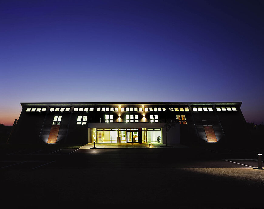 Im Anschluss an ein gutachterliches Wettbewerbsverfahren im Februar 2006 für die VELUX-Deutschland GmbH wurde in unmittelbarer Nähe zum Produktionsstandort Sonneborn in Thüringen ein Schulungsgebäude realisiert, welches eine Identitätsbildende Gestaltung unter Verwendung des umfangreichen Spektrums der hauseigenen Produkte mit einem innovativen Klimakonzept vereinbart und den Betrieb des Gebäudes ohne Klimatisierung ermöglicht. Das große, nahezu ebene Grundstück erlaubt eine Gebäudeausrichtung, die sich nach den räumlich-funktionalen Anforderungen wie auch den klimatischen Rahmenbedingungen frei bestimmen lässt.